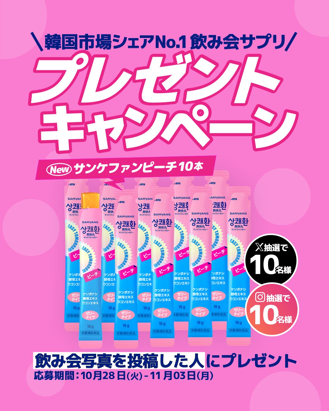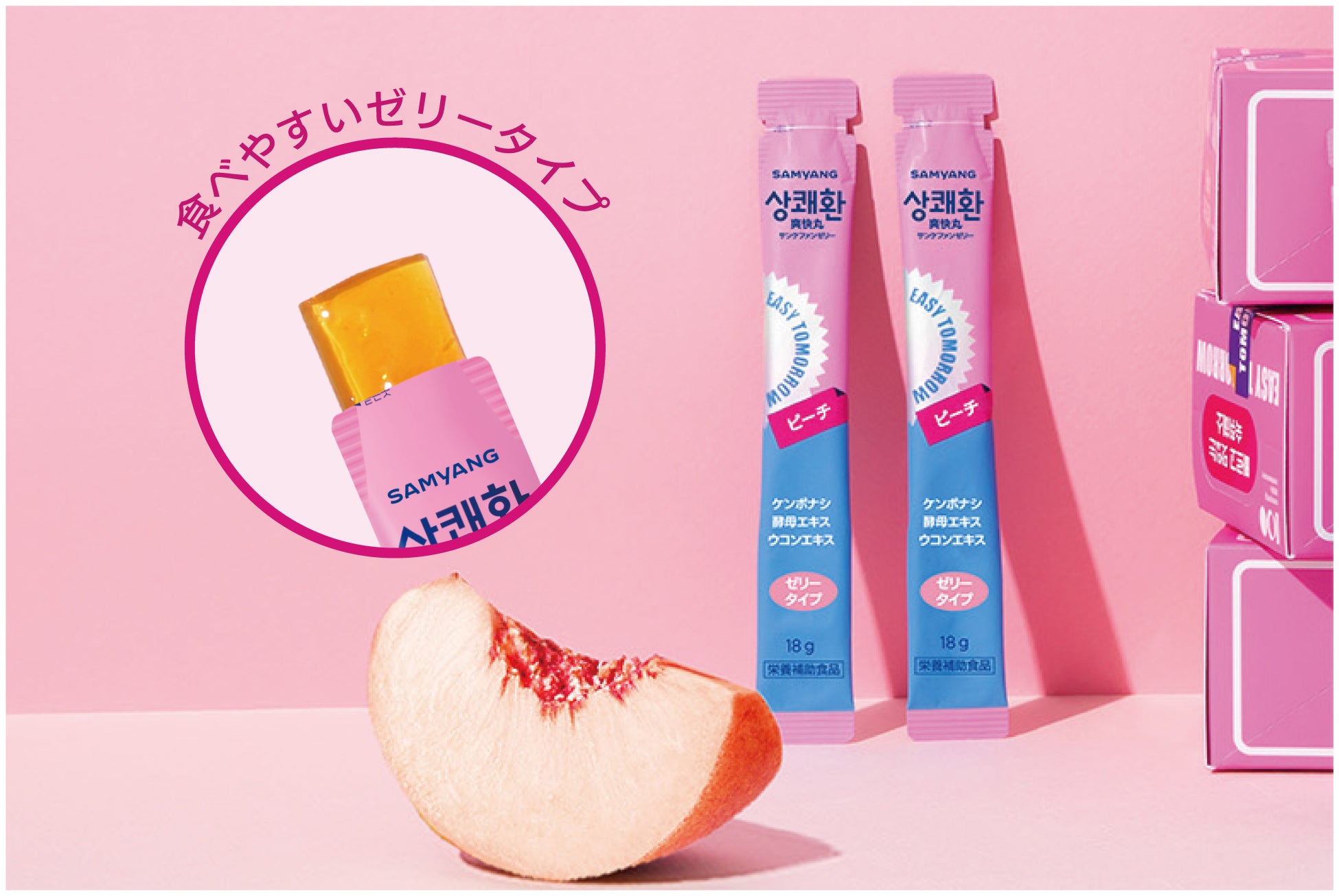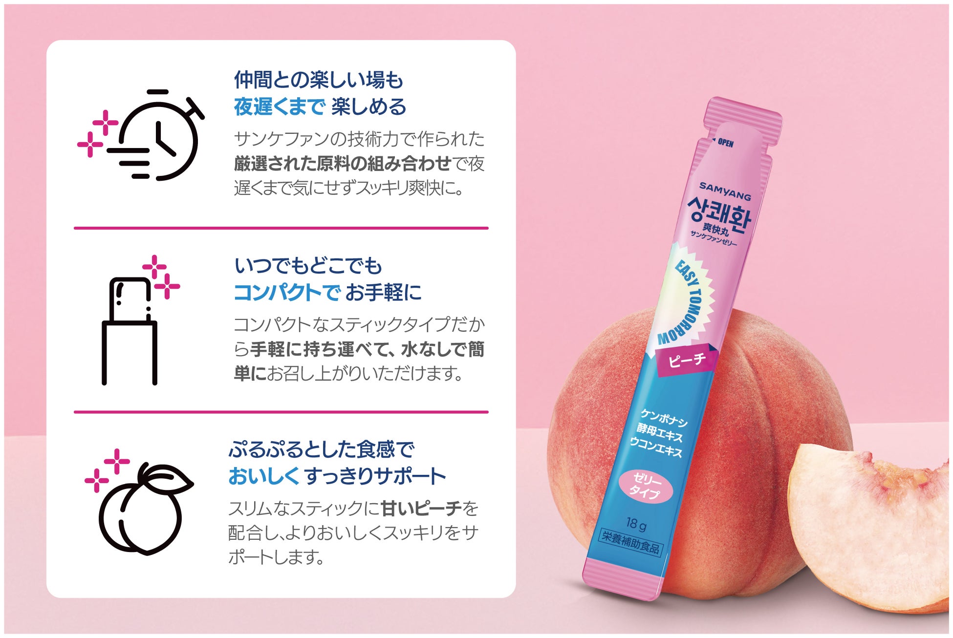 秋冬の飲み会シーズン到来。韓国で“飲む前サプリ”として人気の「サンケファン」に、フルーティーで華やかなピーチ味が仲間入り。