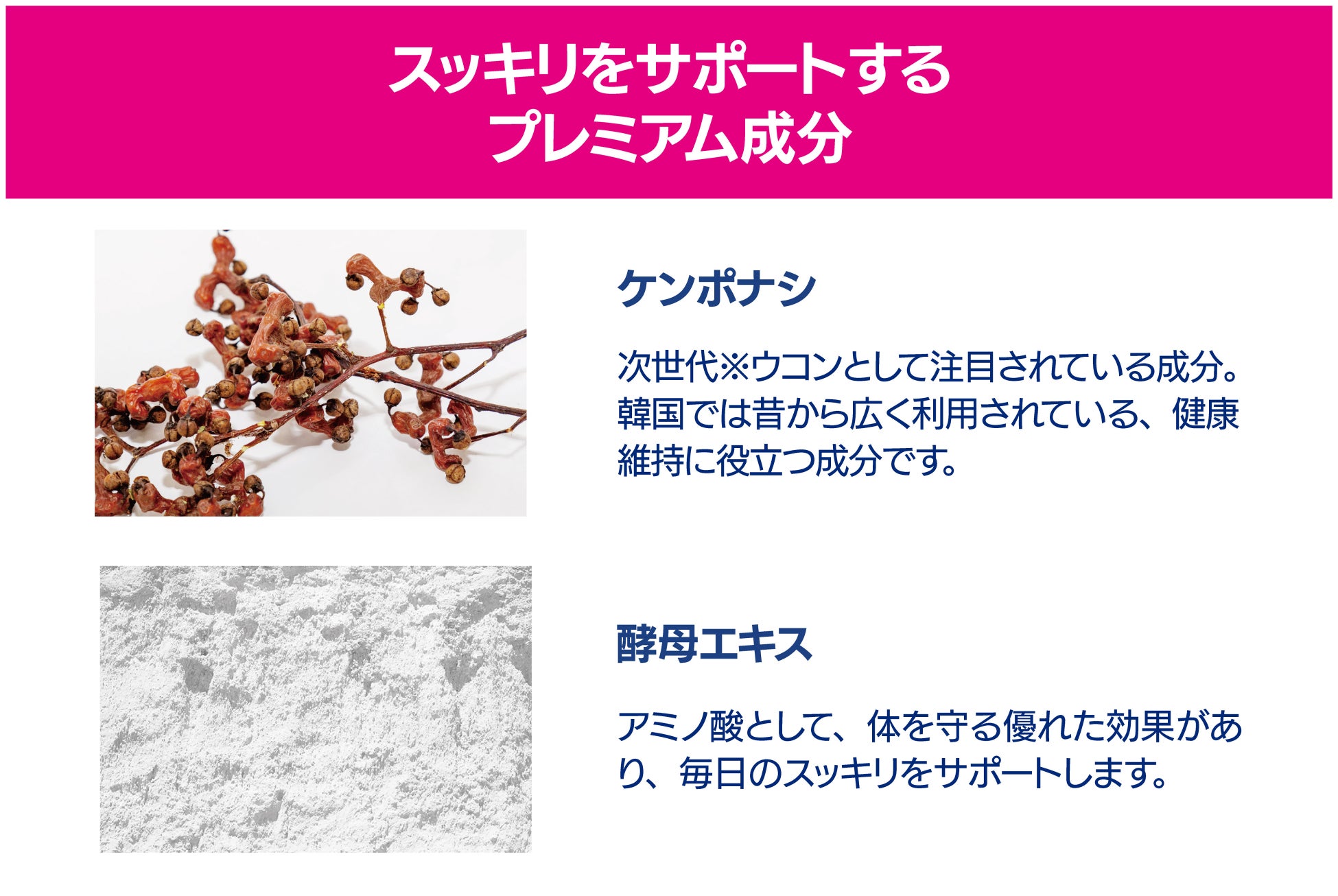 1.ケンポナシ:別名「次世代ウコン」。宴席が多い方をサポートする成分として韓国で昔から広く利用されています。