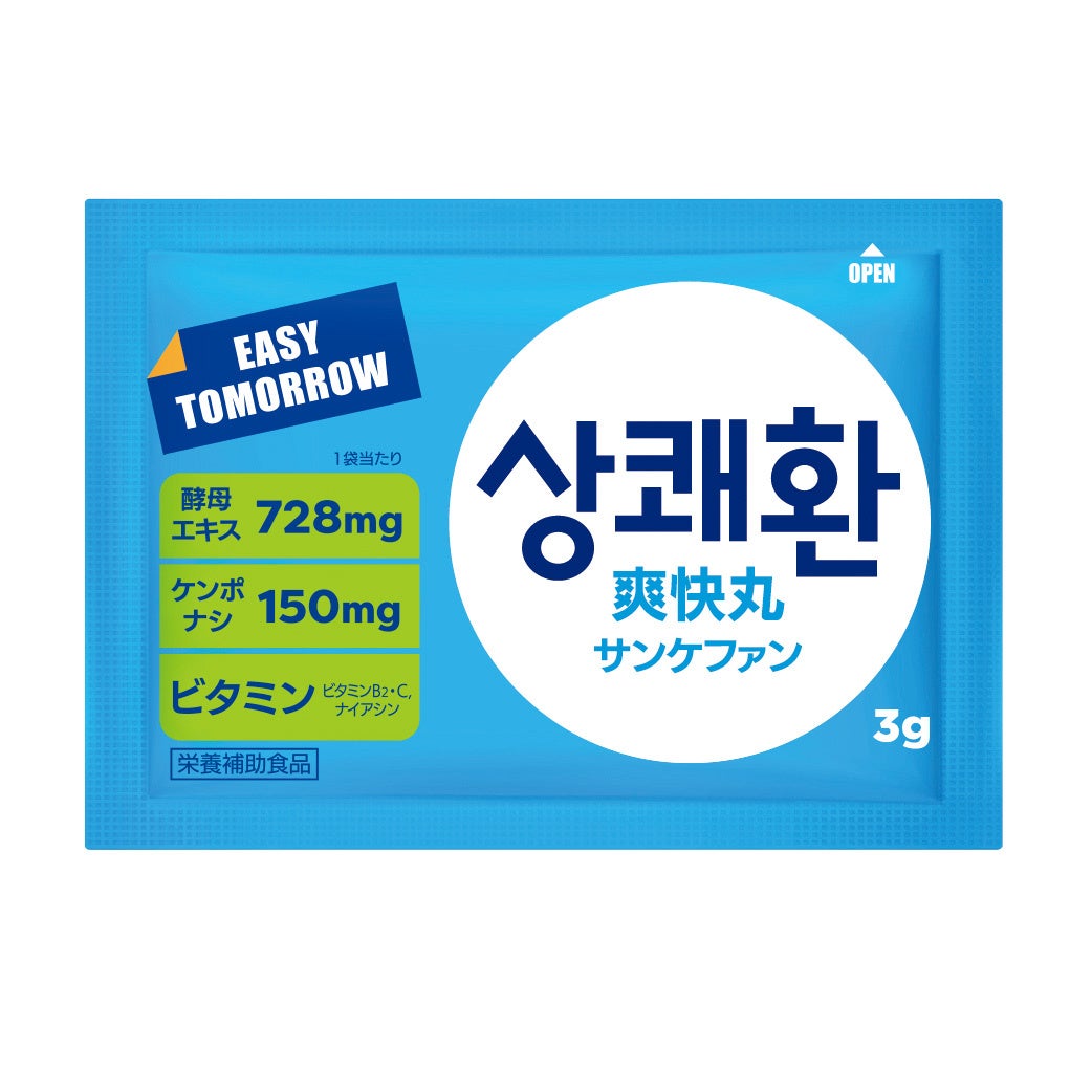 「サンケファン」は韓国で“飲み会の定番アイテム”として定着しており、お酒大国・韓国のコンビニでもよく見かける人気商品です。 翌朝すっきりをサポートする独自の成分バランスと、持ち運びやすいコンパクトなパッケージが人気の秘密です。