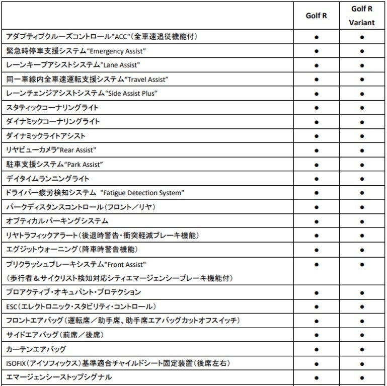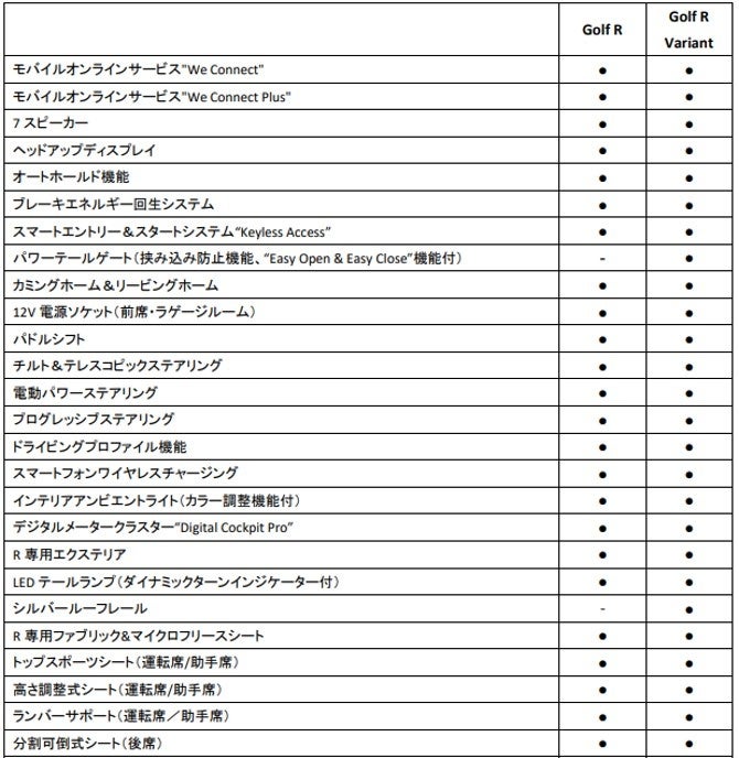 新型「Golf R」「Golf R Variant」のグレード構成は1グレードのみ、全国希望小売価格は、新型「Golf R」が¥6,398,000(税込)、新型「Golf R Variant」が¥6,525,000(同)です。