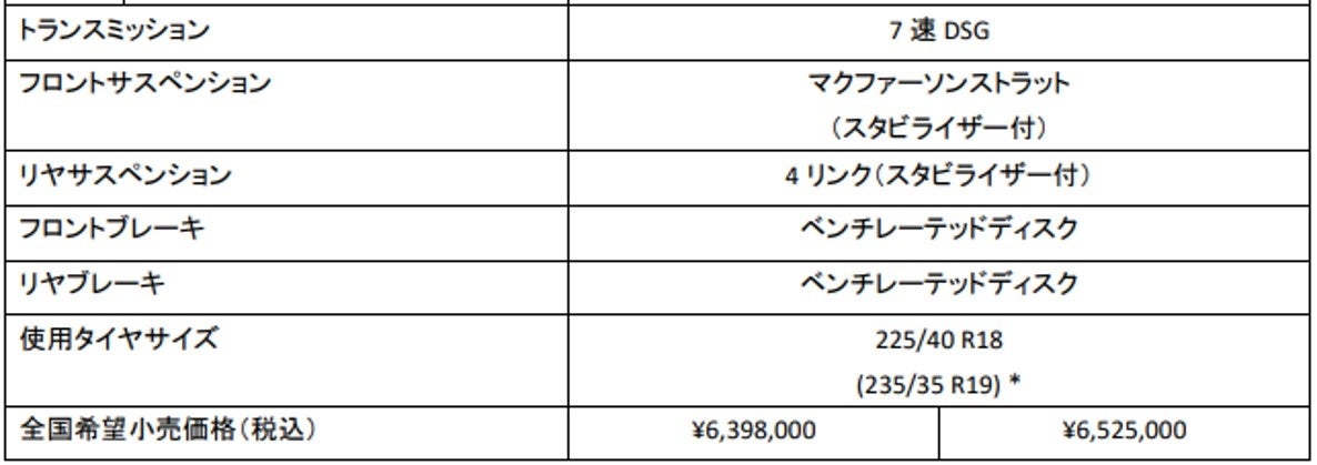 諸元表や主要装備表、オプションなどは次頁以降をご参照ください。