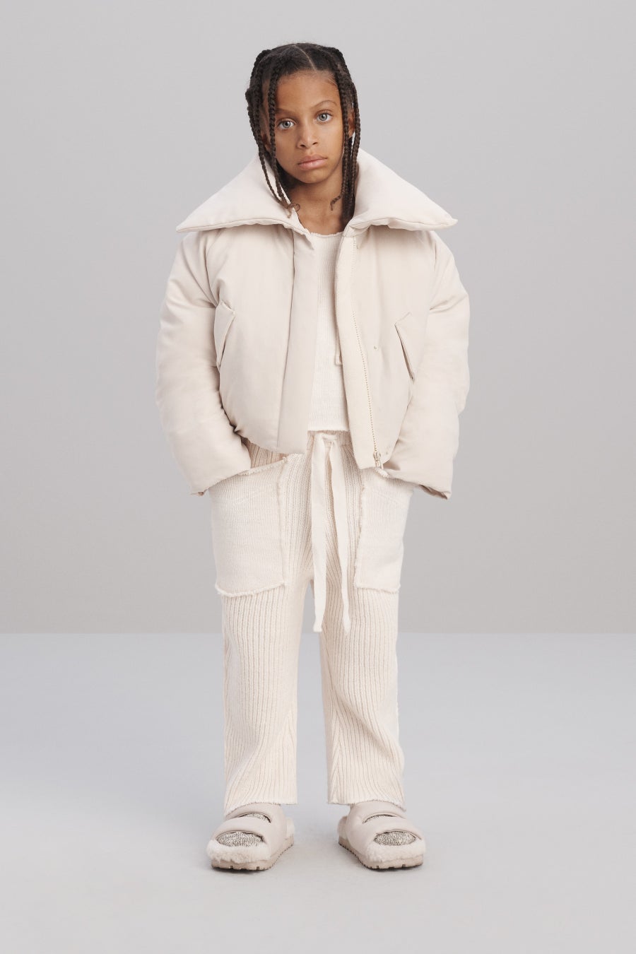 レディースやメンズのデザインに補完的であっても決して、ただ「ミニサイズ」にしただけのコレクションではありません。そのデザインには、快適さ、実用性、そしてぶれずに気取らないクールさの要素が落とし込まれています。大胆にカラーブロックされたカジュアルなアイテムをベースに、ウォッシュ加工のファブリックによって、ニュートラルなパレットに柔らかい印象を与えています。ジェンダー問わず、すべてのキッズに向けた快適さが重要視されたコレクションとして展開しています。