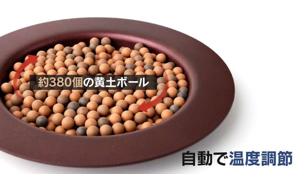 黄土ボール・エアグリルパンのグリルの下にはぎっしりと1000度の窯で焼いた約380個の黄土ボールが敷き詰められており、自動で温度調節をします。