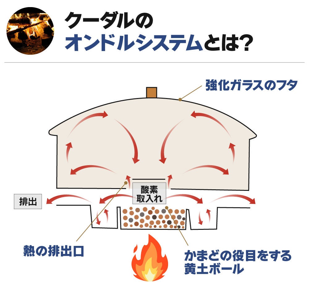 【黄土ボールエアグリルパンのヒミツ②:独自のオンドルシステムで隈なく均一な炎が実現!】