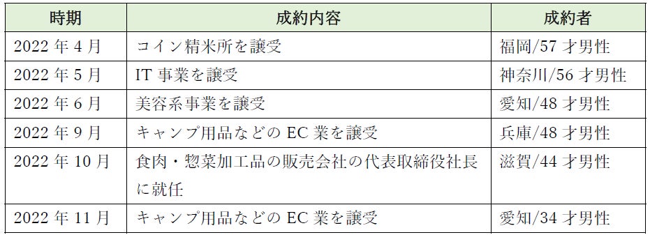 成約事例(※1)としては、6例目となり、また本事例の譲渡元は、9月に兵庫県在住の男性が成約に至った三重県の法人で、本プログラムでの譲渡2件目となります。
