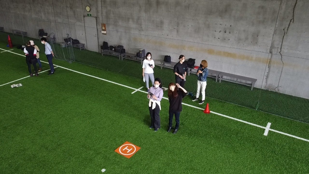 ドローンジョプラスでは、ドローンの操縦技術の向上を⽬的とした練習会も実施しており、 パイロットのスキルによっては、ドローンジョプラス在籍の経験豊富なパイロットに同⾏できるため現場の実績を積むことができます。