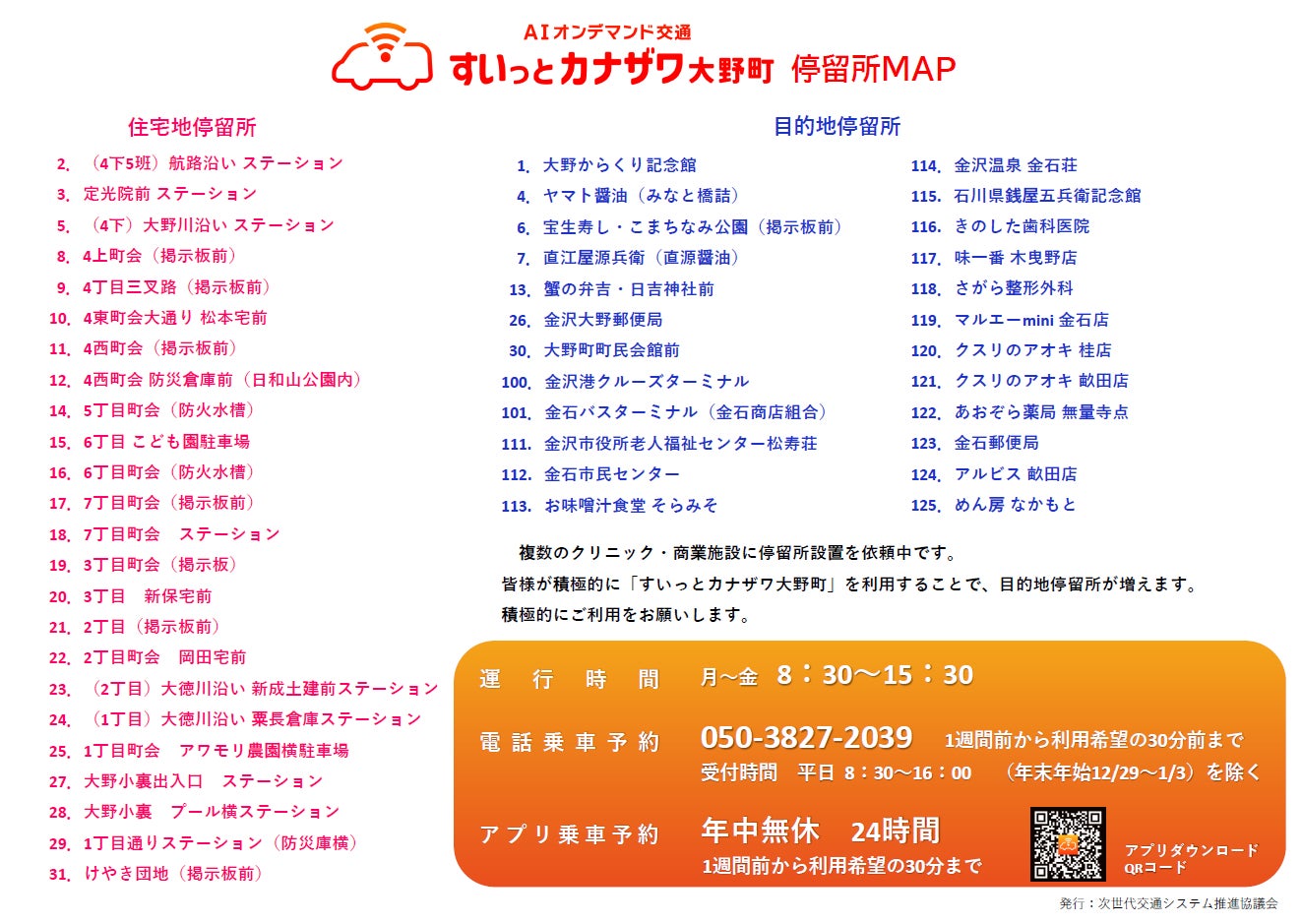SWAT Mobility Japan株式会社(本社:東京都千代田区、代表取締役:末廣将志)は、金沢市大野町で2025年4月14日から開始したオンデマンド交通の実証実験に運行システムの提供を開始しました。