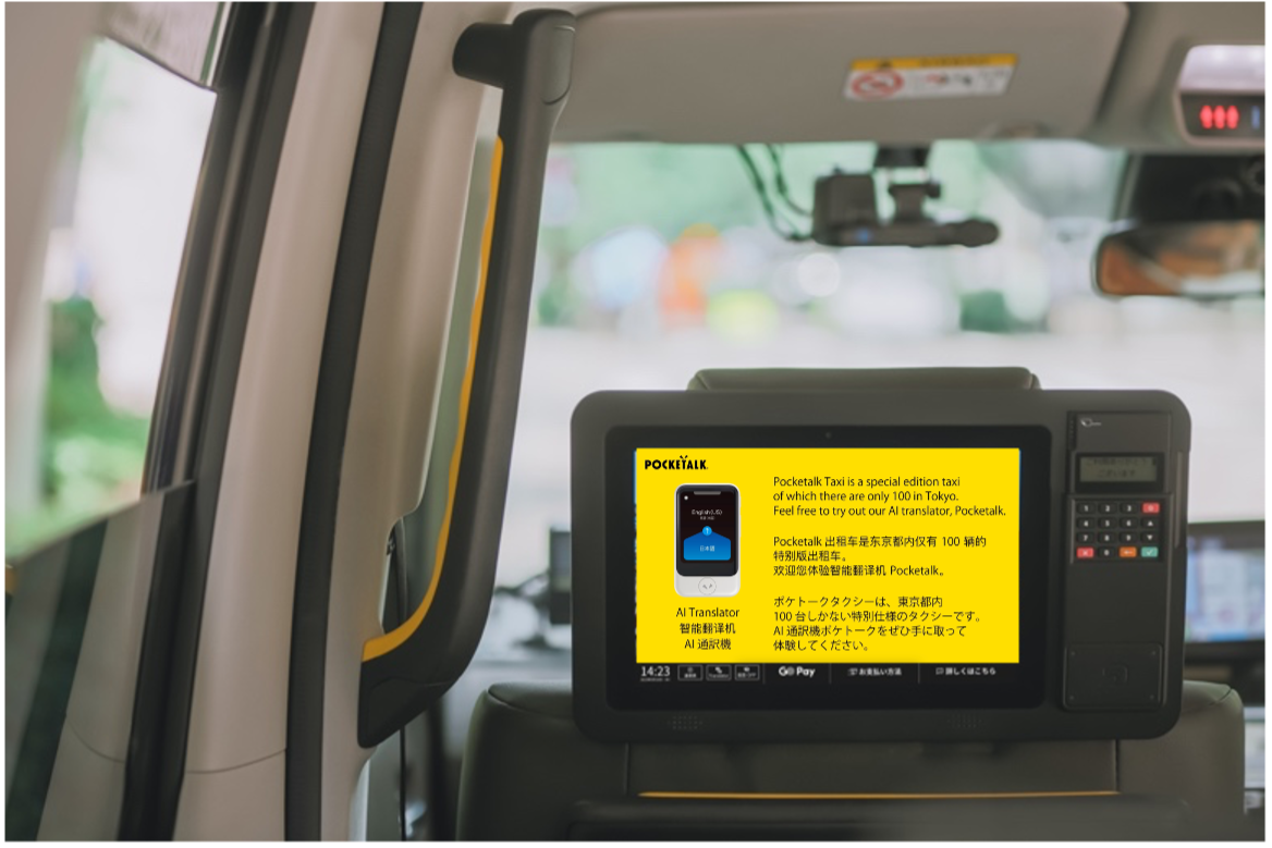 AI通訳機搭載の「ポケトークタクシー」が都内限定で100台走行開始