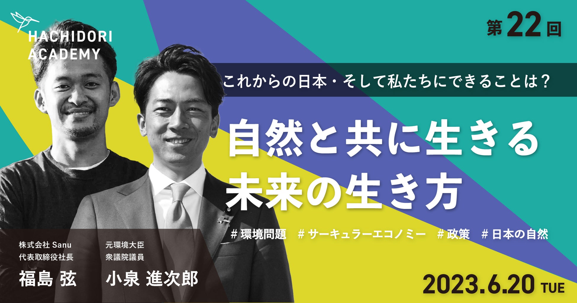 この度「ハチドリアカデミー(https://hachidori-denryoku.jp/event/academy/)」にSANU代表の福島が登壇いたします。元環境大臣 衆議院議員 小泉氏と共に「〜これからの日本・そして私たちにできることは?〜 自然と共に生きる未来の生き方」についてセッションいたします。