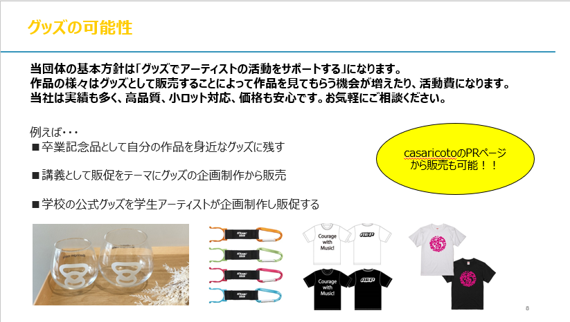 次世代のアーティストたちの支えになっていけるようにピスネームを販売支援金にあてます。