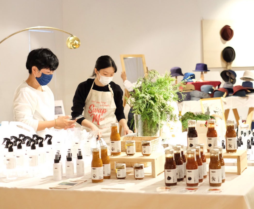 今回の「Swap Meet 高原の青空市場」イベントの記念すべき第一回目では、多肉植物やドライフラワー、スパイス、焼き菓子やパン、服や雑貨、帽子までもが集まる、岡山県の注目のお店やブランドの多彩なラインナップ。