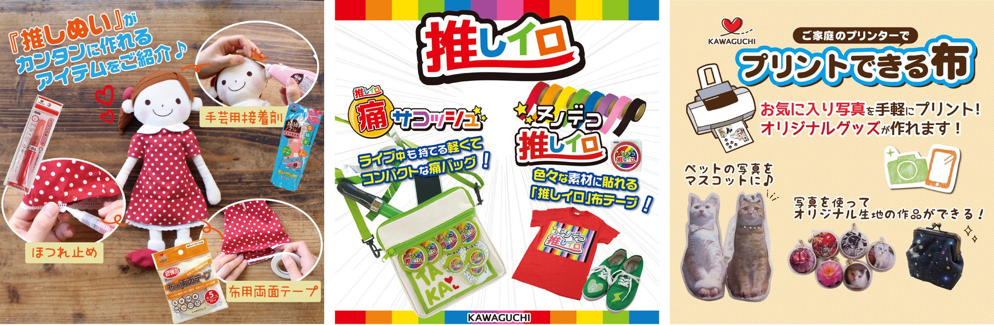 を楽しむハンドメイドグッズをはじめ、多彩なハンドメイドの体験など、KAWAGUCHIならではの新しく魅力的なアイテムをご用意しています!