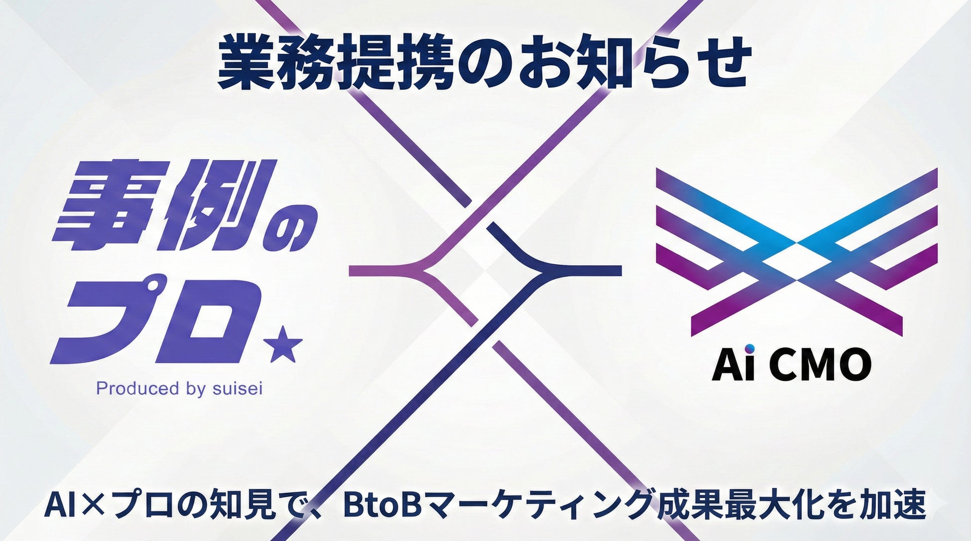 「AI×人の力で、マーケティングを変革する」をミッションに掲げ、AIを活用したCMO代行・マーケティング支援事業を展開するAi CMO株式会社(本社:東京都目黒区、代表取締役:高田竜次、以下「Ai CMO」)は、導入事例制作サービス「事例のプロ(https://jireinopro.sui-sei.tokyo/)」を運営する株式会社スイセイ(本社:東京都品川区、代表取締役:松村幸弥、以下「スイセイ」)と業務提携を締結いたしました。