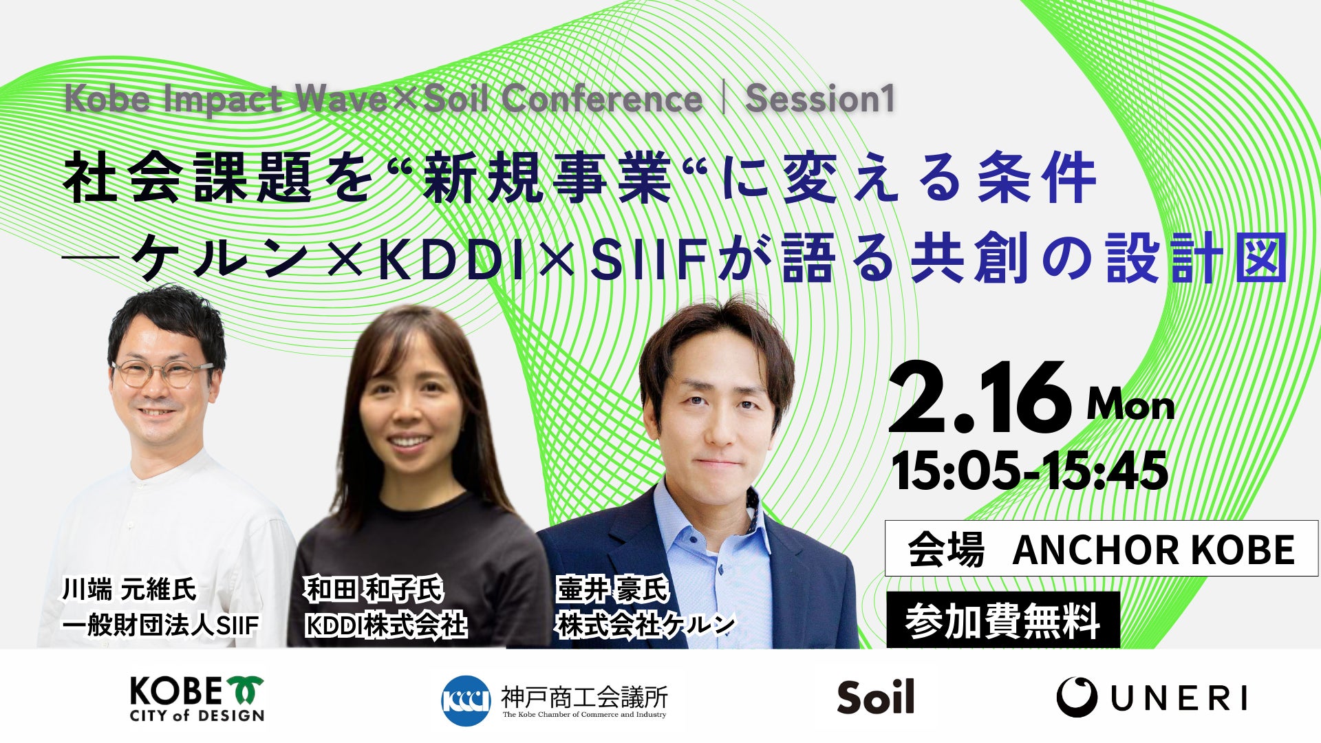 本カンファレンスは、KIWの集大成として、地域企業、インパクトスタートアップ、NPO、行政といった多様なプレイヤーが『インパクト』という共通概念を共有し、地域課題の解決に協働して取り組むエコシステムを構築する第一歩とすることを目指します。神戸市、神戸商工会議所、公益財団法人Soilの共催により、2026年2月16日(月)にANCHOR KOBEにて開催いたします(詳細は下部に記載)。