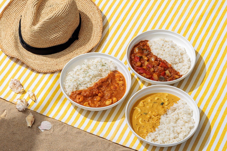 オンラインショップでも、2022年7月4日(月) よりCurry Stock カTokyo特設サイトをオープンいたします。カレーの魅力を発見してほしいという思いで、約20種類のメニューの中から、「海」「山」をテーマに選んだセットをご用意します。ご自宅で風景を思い浮かべたり、実際に外で風を感じながら食べてみたり、いつもとは少し違う気持ちやシチュエーションでお楽しみください。