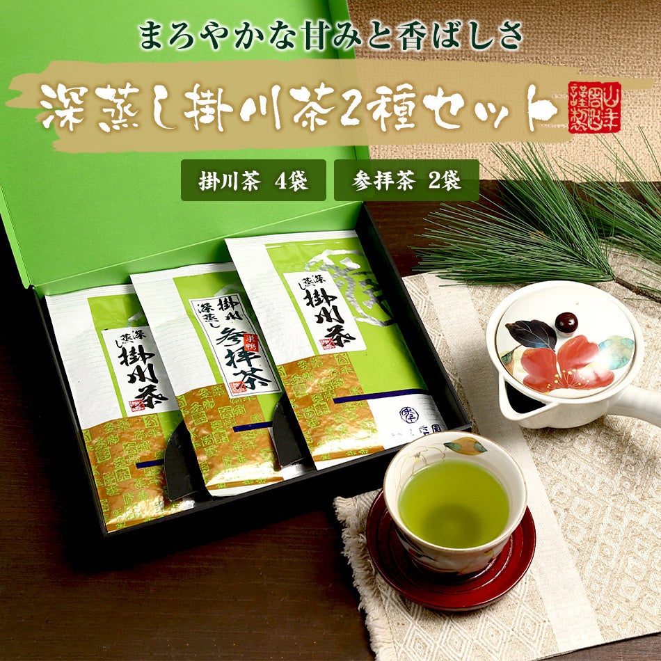 巣鴨のお茶屋さん山年園ネットショップにて、「深蒸し掛川茶2種セット」の販売を開始しました。人気の掛川茶を6本セットにしてギフト用に箱詰めしてお届け致します。