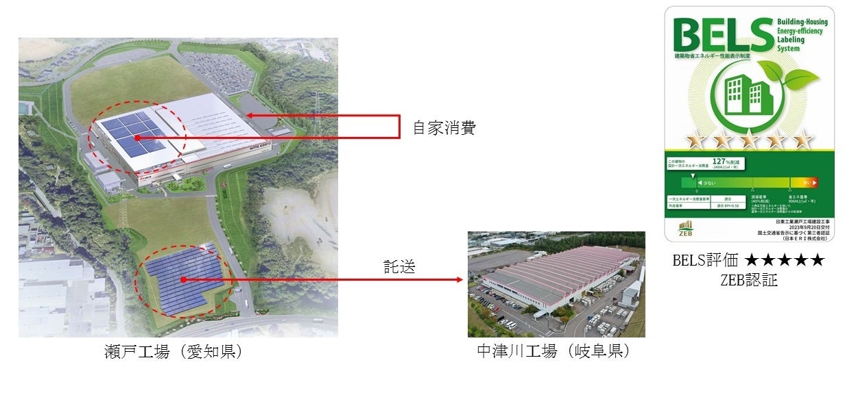 ・CO₂削減に向けた取り組みとして、工場南側敷地に太陽光発電システム(パネル容量 1,134kW)を設置し、発電した電力を当社中津川工場へ託送します。