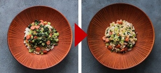 混ぜれば混ぜるほど、美味しくなります。混ぜてもべとつきの少ない「カルローズ」だからこそ