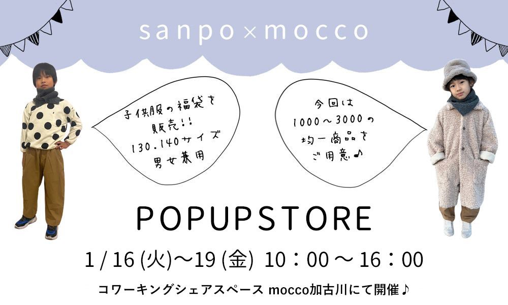 【加古川】期間限定ポップアップストア開催!オンラインショップ個性派ナチュラル服専門店『sanpo kuschel(サンポ クシェル)』から嬉しい”子ども服福袋”とレディースが均一価格でお目見え!