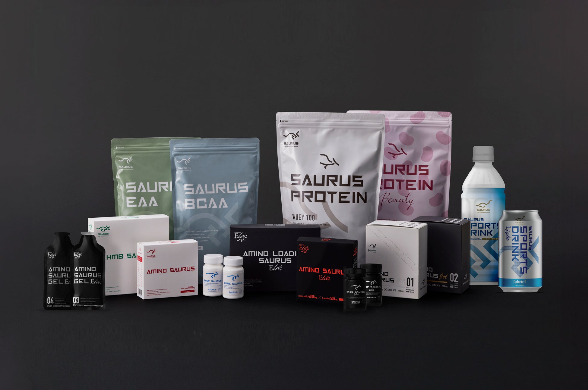 「SAURUSシリーズ」は、プロフェッショナルなアスリートはもちろん、現代を生きる全ての人々の健康をサポートし、スポーツを楽しみ、アミノ酸をより手軽に美味しく生活に取り入れていただけるよう改良を重ねているSAURUS JAPANが生み出すアミノ酸健康食品シリーズです。