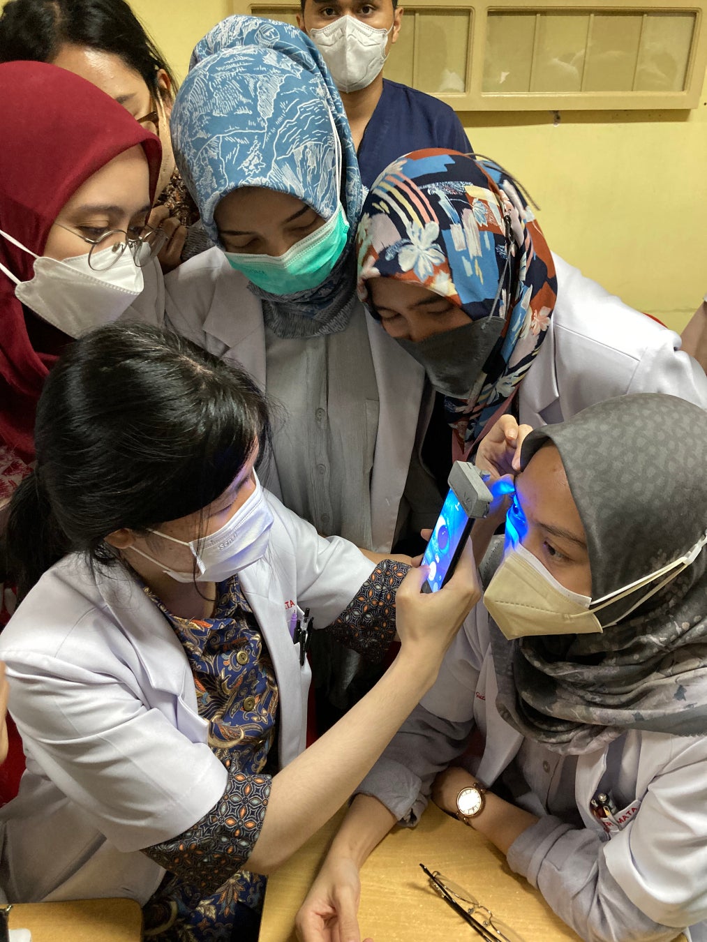 世界の失明原因第一位は白内障です。白内障は適切な時期に治療をすれば失明に至らない可能性が高いにもかかわらず、発展途上国においては白内障による失明が社会問題となっています。SECはiPhoneに取り付けて使用する小型な医療機器であるため、電気のない地域や被災地など場所を選ばず眼科診察を可能にします。