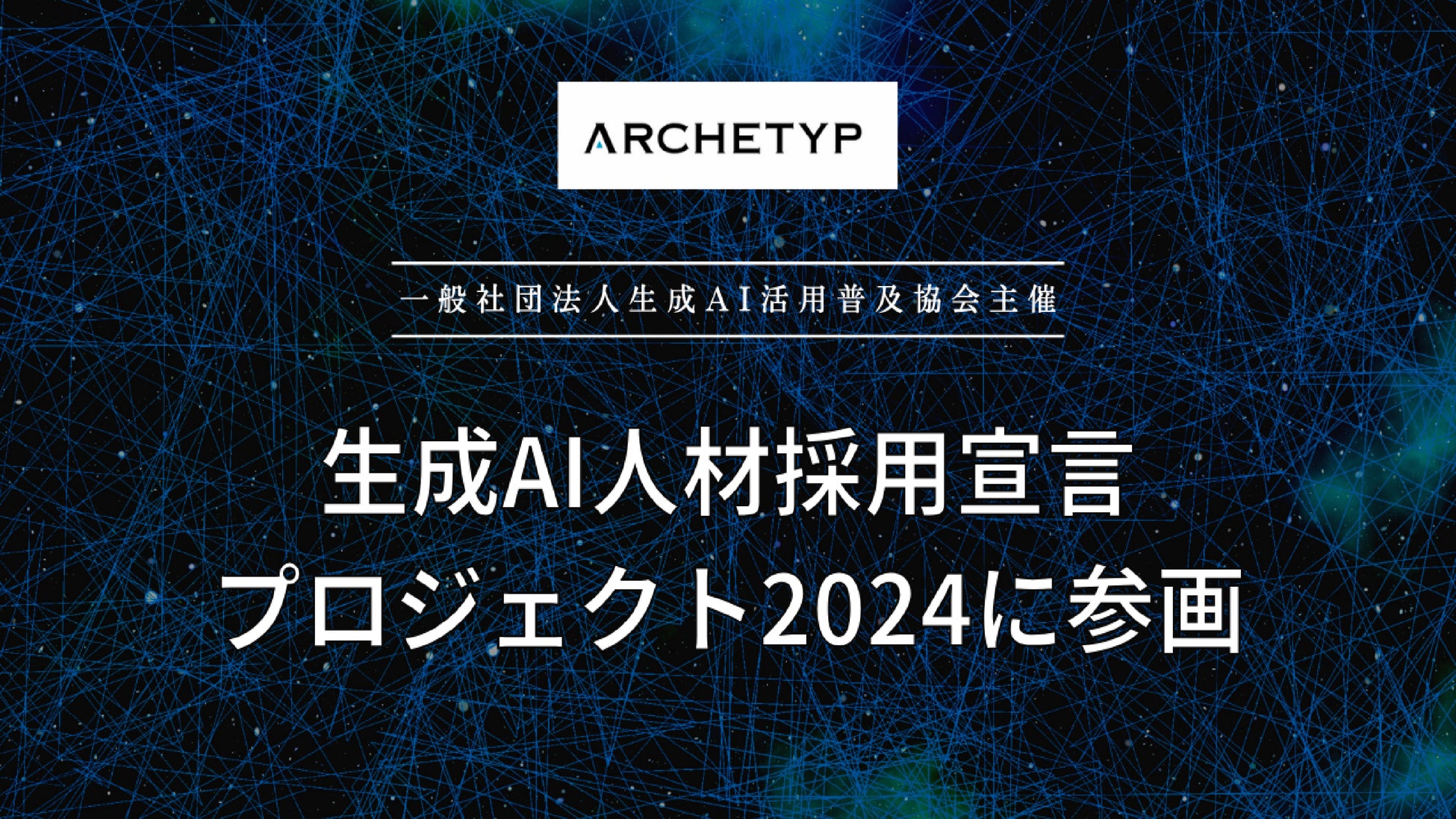 株式会社アーキタイプ(本社:東京都渋谷区、代表取締役社長:齋藤順一)は一般社団法人生成AI活用普及協会(GUGA)が始動した共同プロジェクト「生成AI人材採用宣言プロジェクト2024」への積極的な参画と同時に人材派遣事業におけるAI人材の採用強化を発表しました。