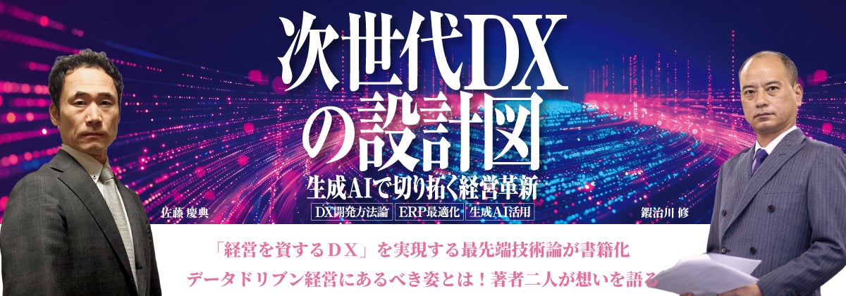 公式LP公開を記念し、同サイトにて本書を執筆した当社BI戦略教導グループ シニアマネージャー 鍜治川 修と同グループ マネージャー 佐藤 慶典への特別インタビューを掲載しました。ERPとBI分野に20年以上の経験を持つ業界の実践者として、「経営に資するDX」がなぜ進まないのか、生成AIは脅威なのか、その理由と今後の展望を語ります。