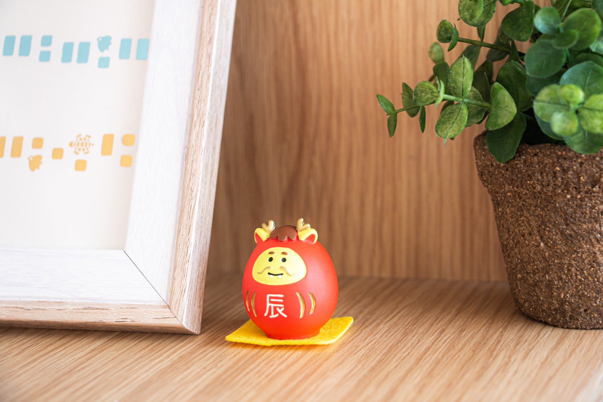 やさしい表情の辰だるまは紅白で揃えて飾るとお正月の雰囲気が感じられます。