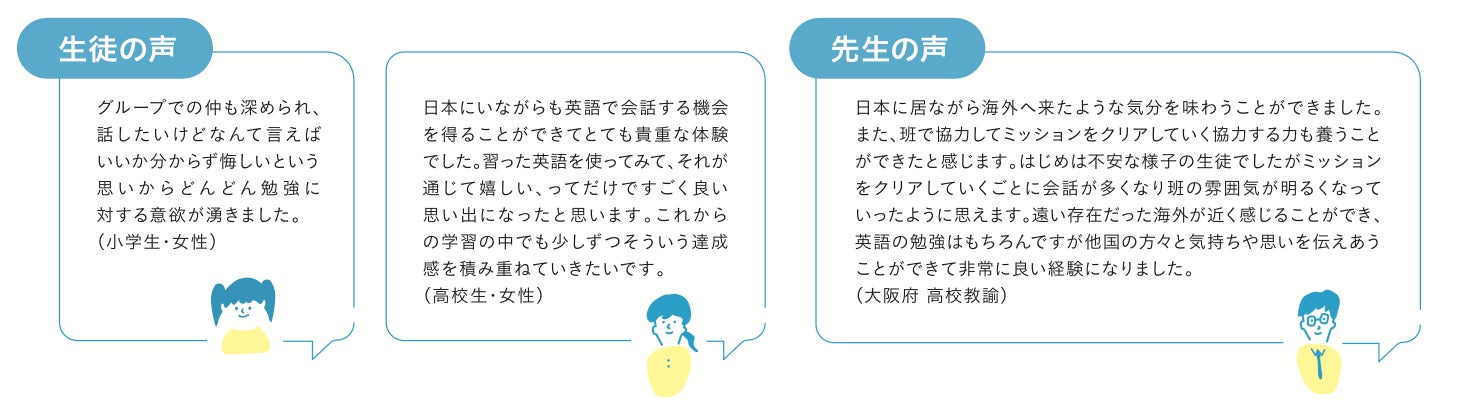 私たちは今後も、国際交流プロダクトを全国・海外へ展開し、質の高い英語学習・国際交流体験を広くあまねく提供することで、多様性への受容力ある子どもたちを育成していきます。身近な国際交流を通して、「英語で交流するなんて自分には絶対できない」という固定概念を越え、「国際交流は楽しい。またやりたい!」という気づき・自信を与えることで、多文化共生の社会に近づけていきます。