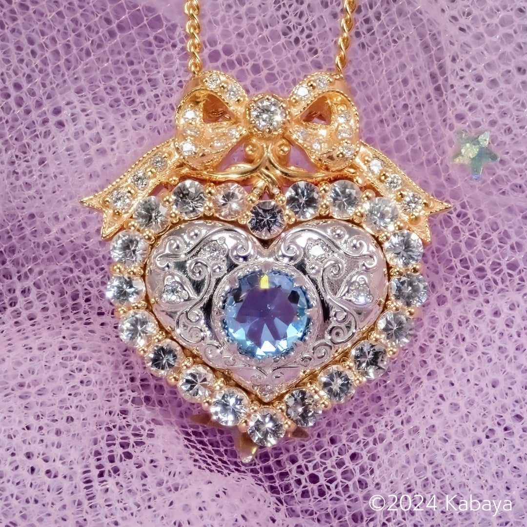 ブルーサファイアやタンザナイト、モルガナイトを中央にあしらった優美なチャーミープレシャスモデルのペンダント。