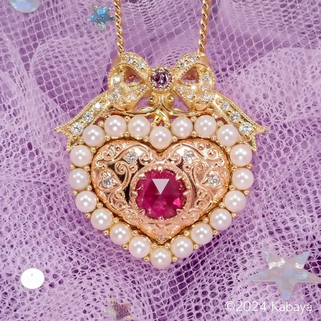 ※ハートの輪郭部分、リボン、チェーンはK18YG(イエローゴールド)のみ。