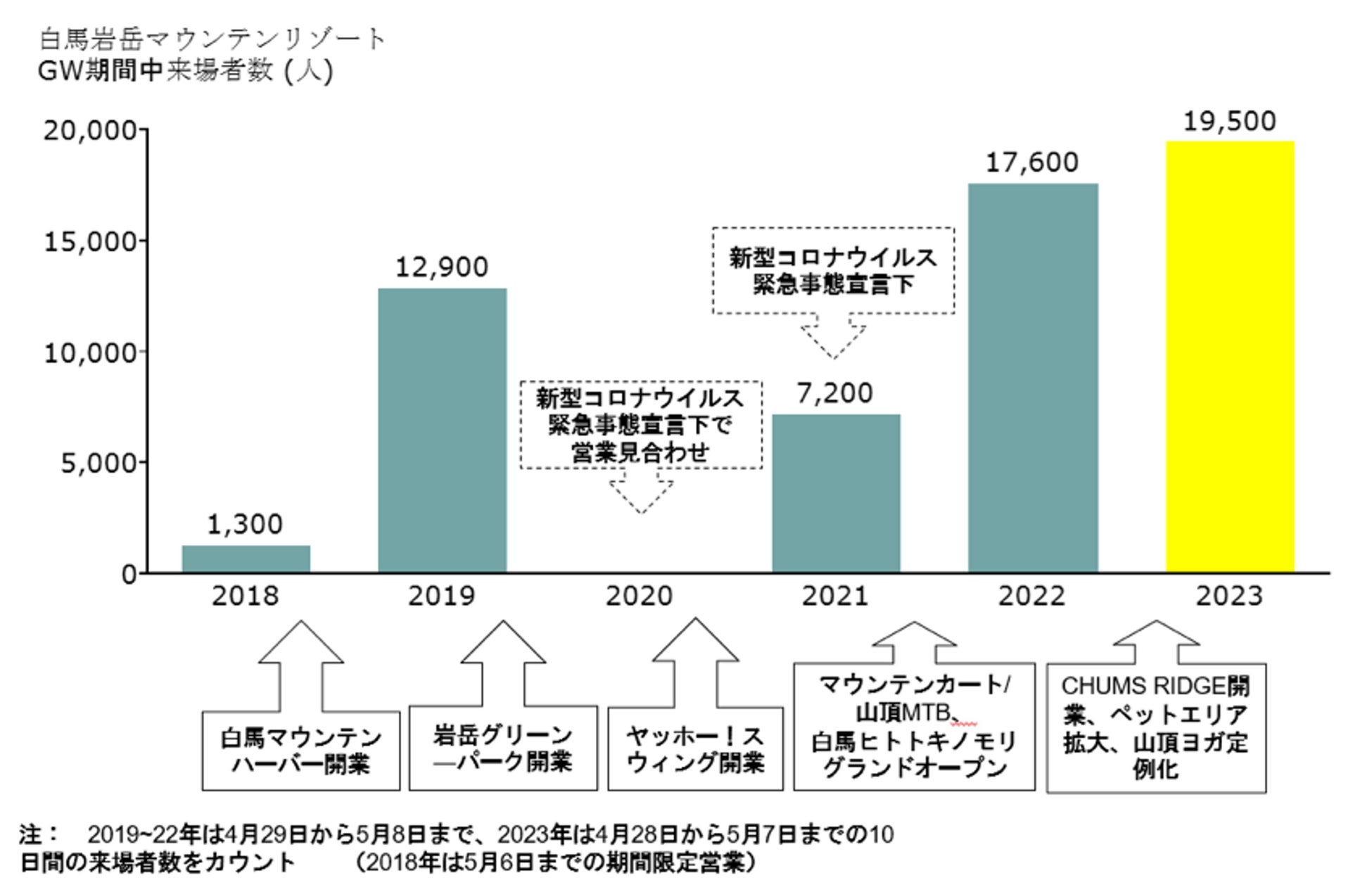 「⽩⾺岩岳マウンテンリゾート」GW期間中の来場者数が前年比110%を達成し2年連続で過去最高を記録