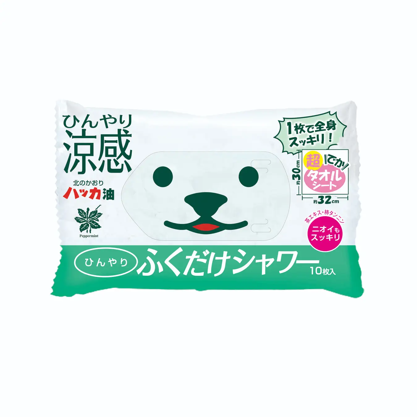 さっと拭くだけで涼感の超でかタオルシート「ひんやりふくだけシャワー 北見ハッカの香り」