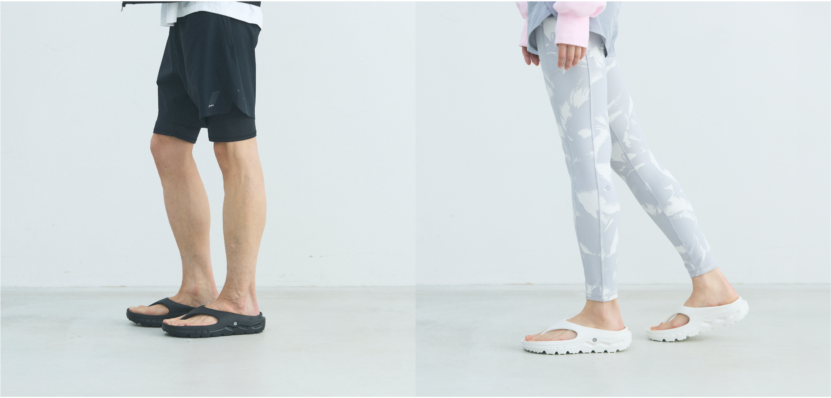 なお、両モデルには一般医療機器として登録された独自構造を採用。足裏のアーチを適切に支え、歩行時の負担を軽減することで、血行促進や疲労回復をサポートします。運動後のコンディショニングはもちろん、立ち仕事や移動後の足元ケアにも活用できる設計です。