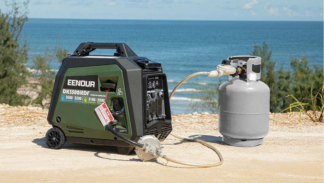 EENOURインバーター発電機DK3500iEDFはガソリンだけではなく、LPガスで長時間の作業や停電にも対応