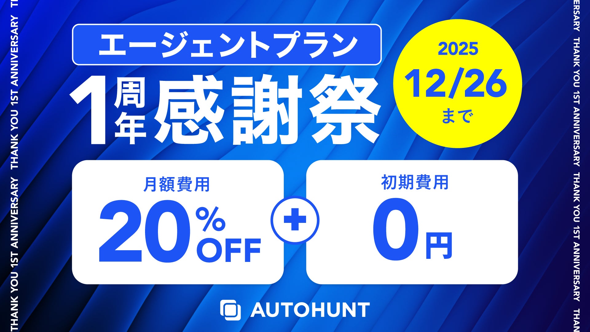 【AUTOHUNT】エージェントプラン1周年感謝祭開催!