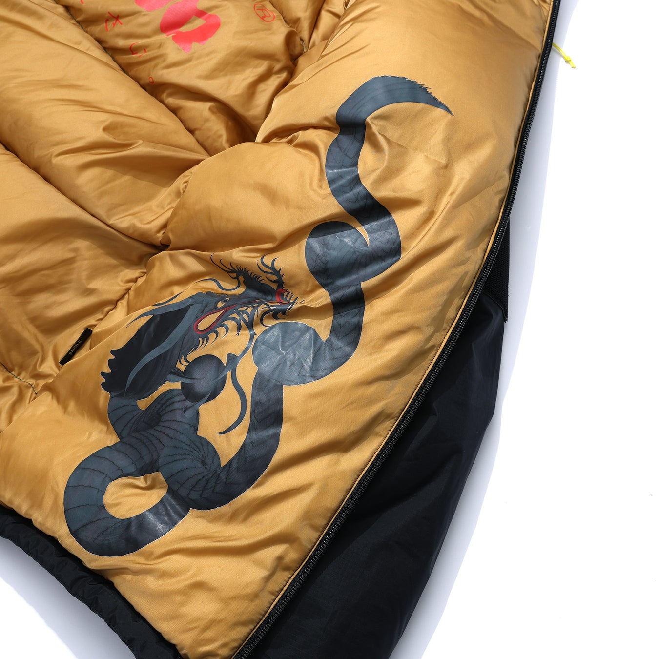 今回のコラボレーションダウンは、ナンガのフラッグシップモデルである“オーロラテックスダウンジャケット”をベースに、天下一品の代名詞“こってりスープ”をデザインに落とし込んだエクスクルーシブな1着となっている。