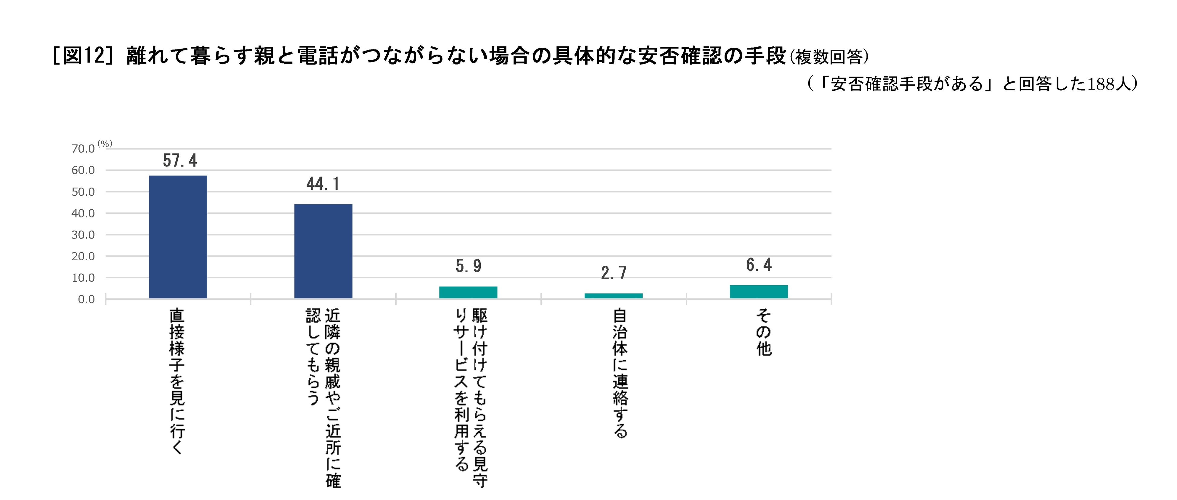 サマリ③ 「親が電話に出ないと不安」は64.5%も、安否確認の手段があるのは5割以下