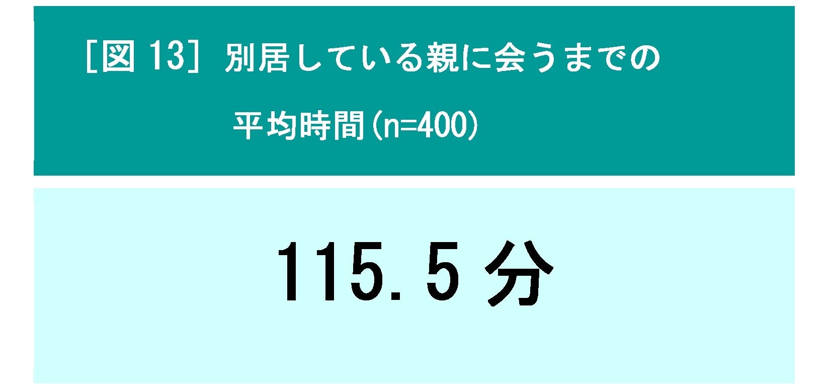●親に直接会うためにかかる時間の平均は115.5分と、物理的に遠方の人も多数いる状況。