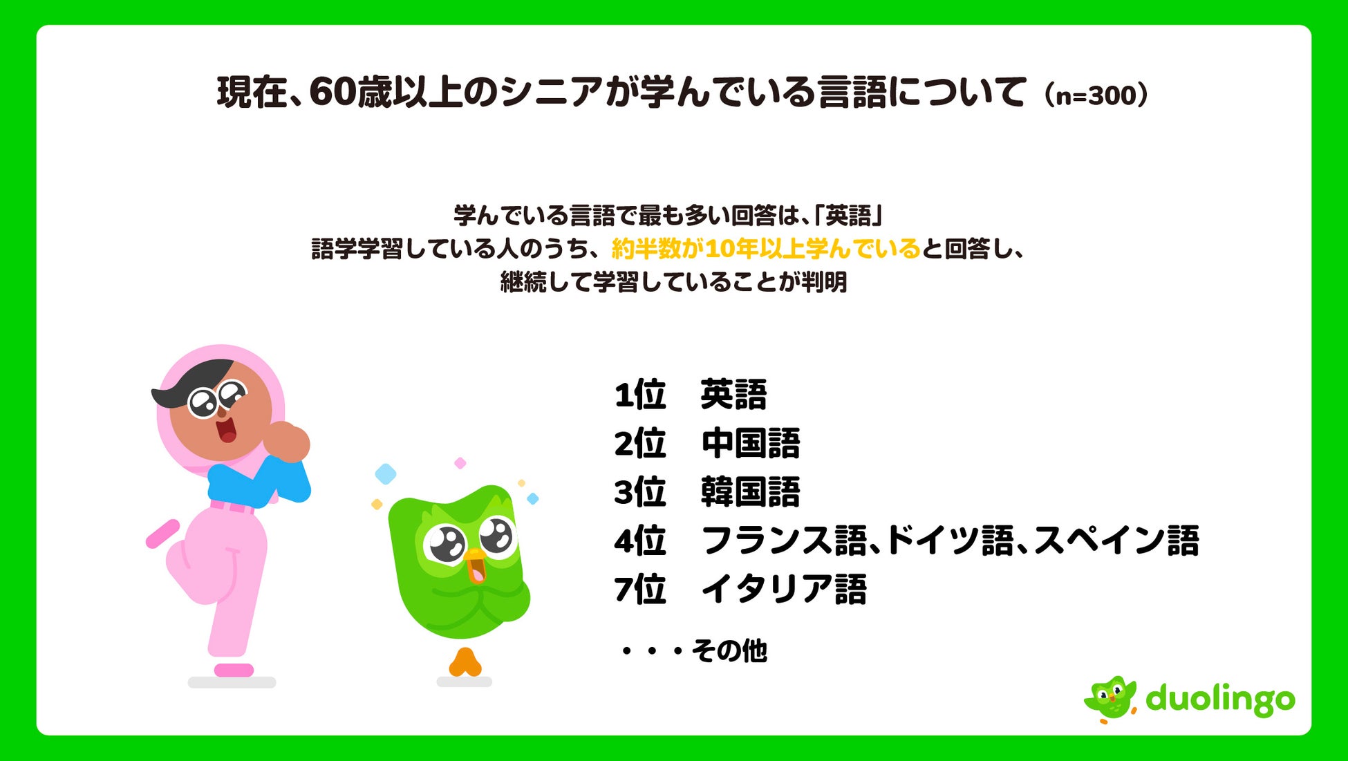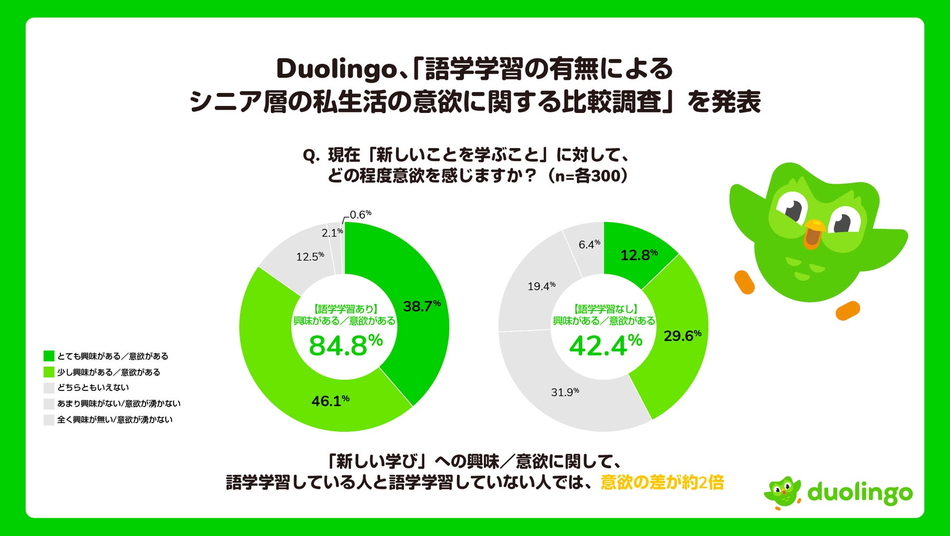 【Duolingo JAPAN Report】『Duolingo 語学学習の有無によるシニア層の私生活の意欲に関する比較調査』を発表