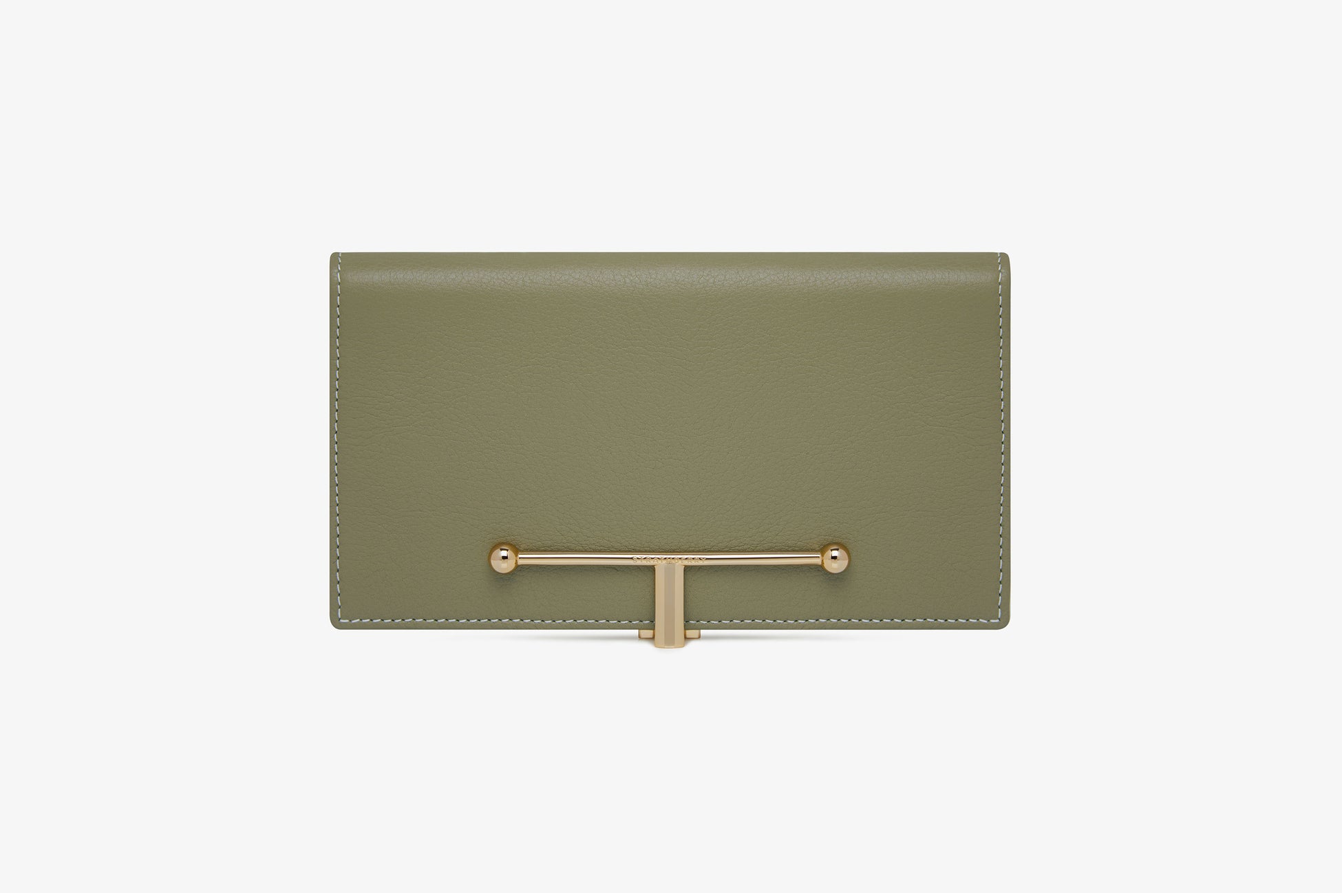 お札を折らずに収められる大きめのメルヴィルストリート・ウォレットは、シーズンカラーのピスタチオが上品。