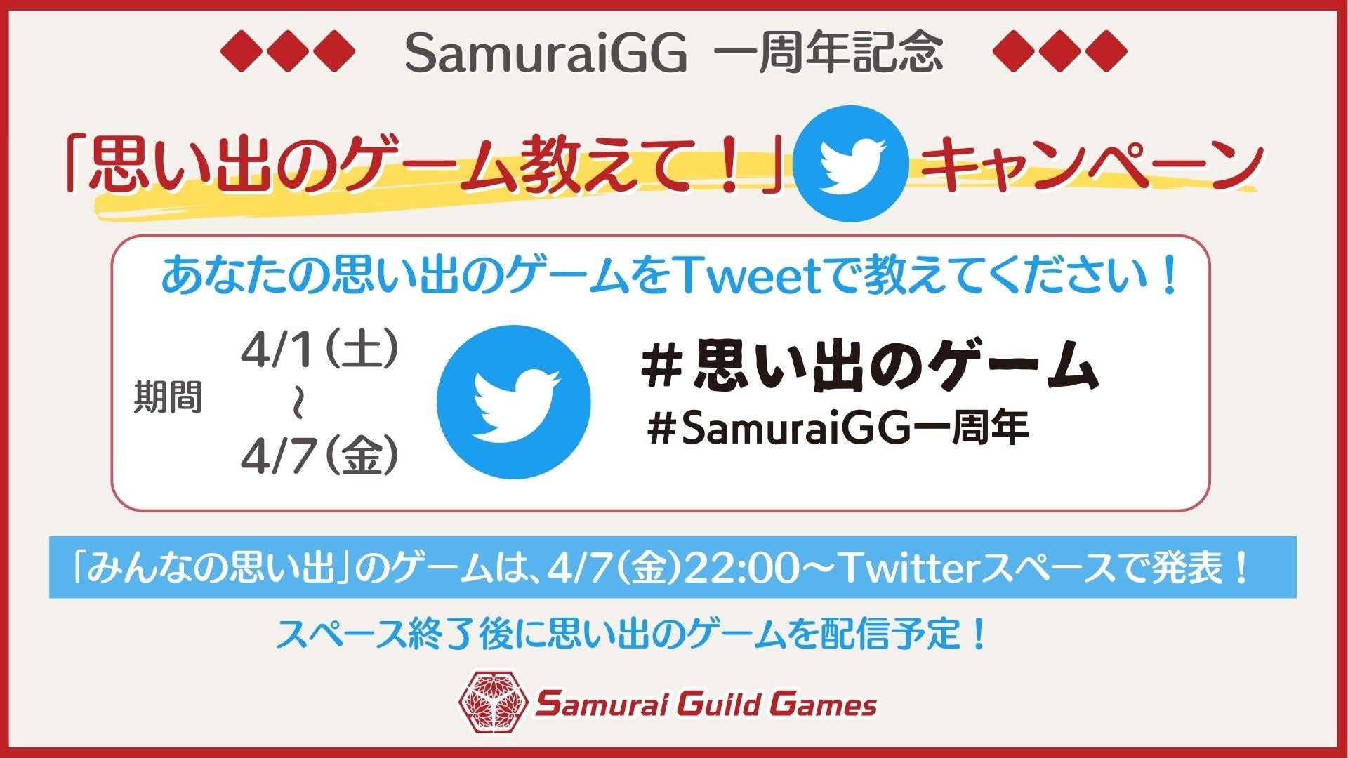 Samurai Guild Games一周年 「#思い出のゲーム」おしえて!Twitterキャンペーン