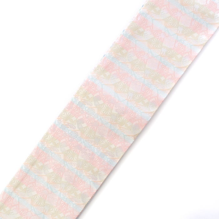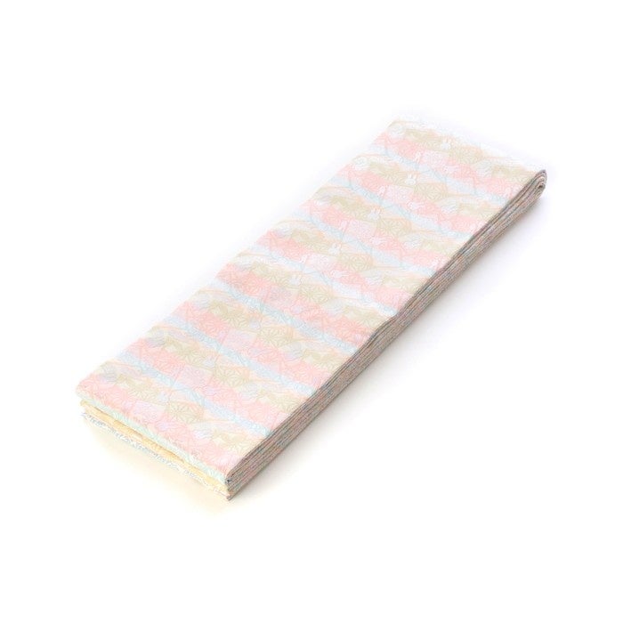 気軽な外出時などに最適な仕立て名古屋帯(京袋帯)。普通に帯を結んでも、仕上がりは「喜びが重なるように」を意味する二重太鼓を結んでいるかの様に見えるお仕立てとなっていますので、ちょっとしたお席の際にも大変便利です。※こちらの商品は「ミッフィー花かるた」の柄のみとなります。