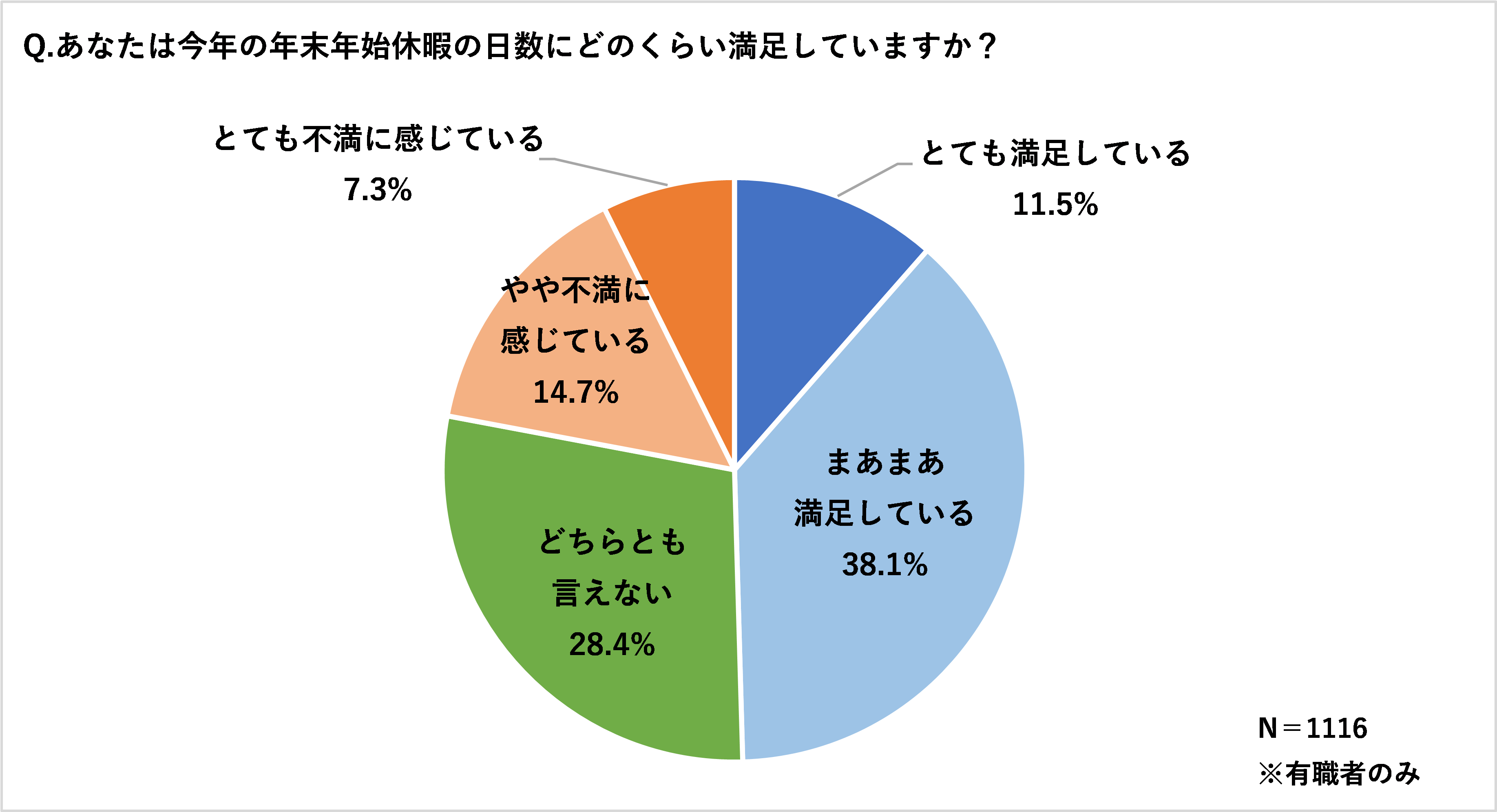 ・今年の年末年始休暇の日数に対して、約半数が満足していると回答。