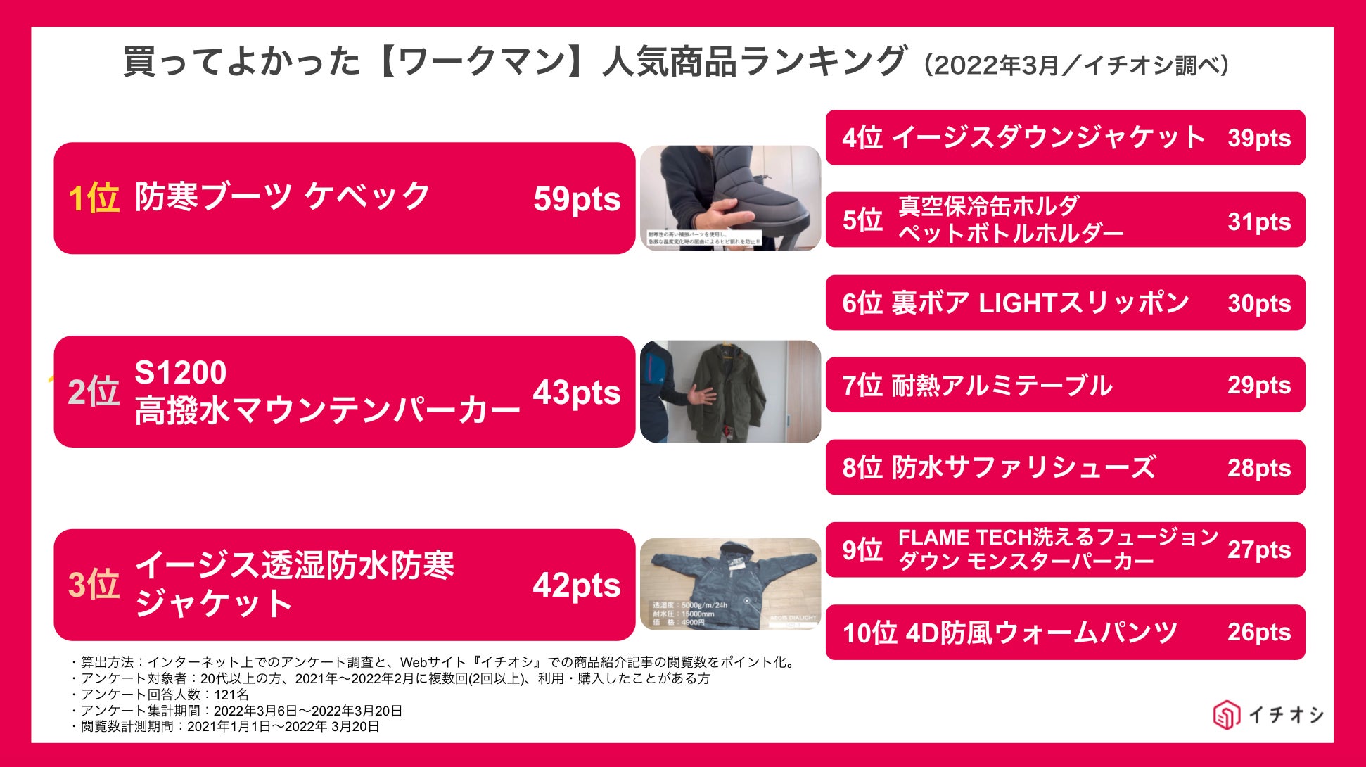 買ってよかった【ワークマン】の人気商品1位は?2022年3月調査ランキングを発表
