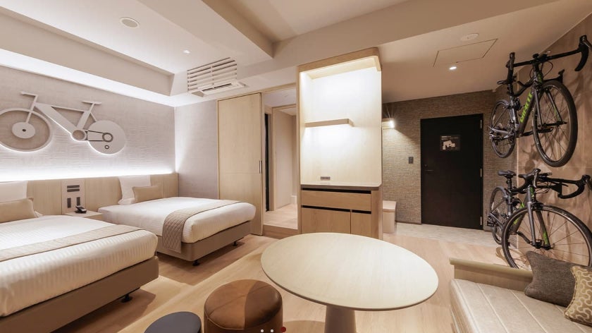 先着100名限定 キャンペーン対象の「サイクリストにやさしい宿」宿泊代が1人当たり5,000円OFF 割引条件は、宿泊当日に自転車で来館し、SNS投稿いただけるサイクリスト