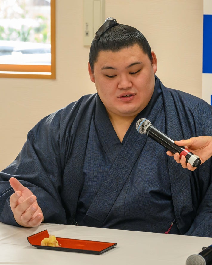 大変美味しいまぐろで縁起が良い一年になりそうです。多くの方が集まってくださり、応援してくれるのは、本当に力になります。11月の九州場所より、今の方が身体の状態もよく、年末の巡業もしっかり回れたため、今から1週間でさらに仕上げていき、良い場所になるよう頑張ります。また、1年を通して、安定した成績をあげられるように頑張ります。