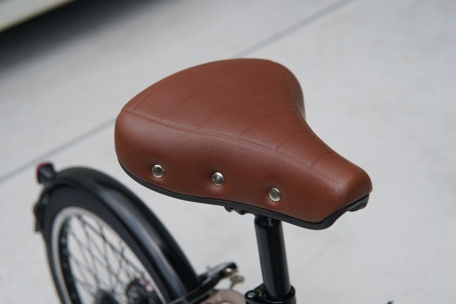 厚めのクッションを搭載した乗り心地の良いサドル。横についているスタッズがクラシックで上品な雰囲気をかもしだします。