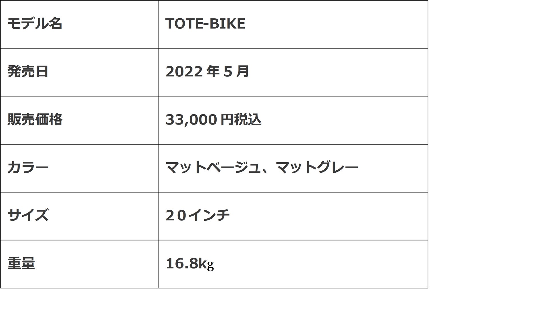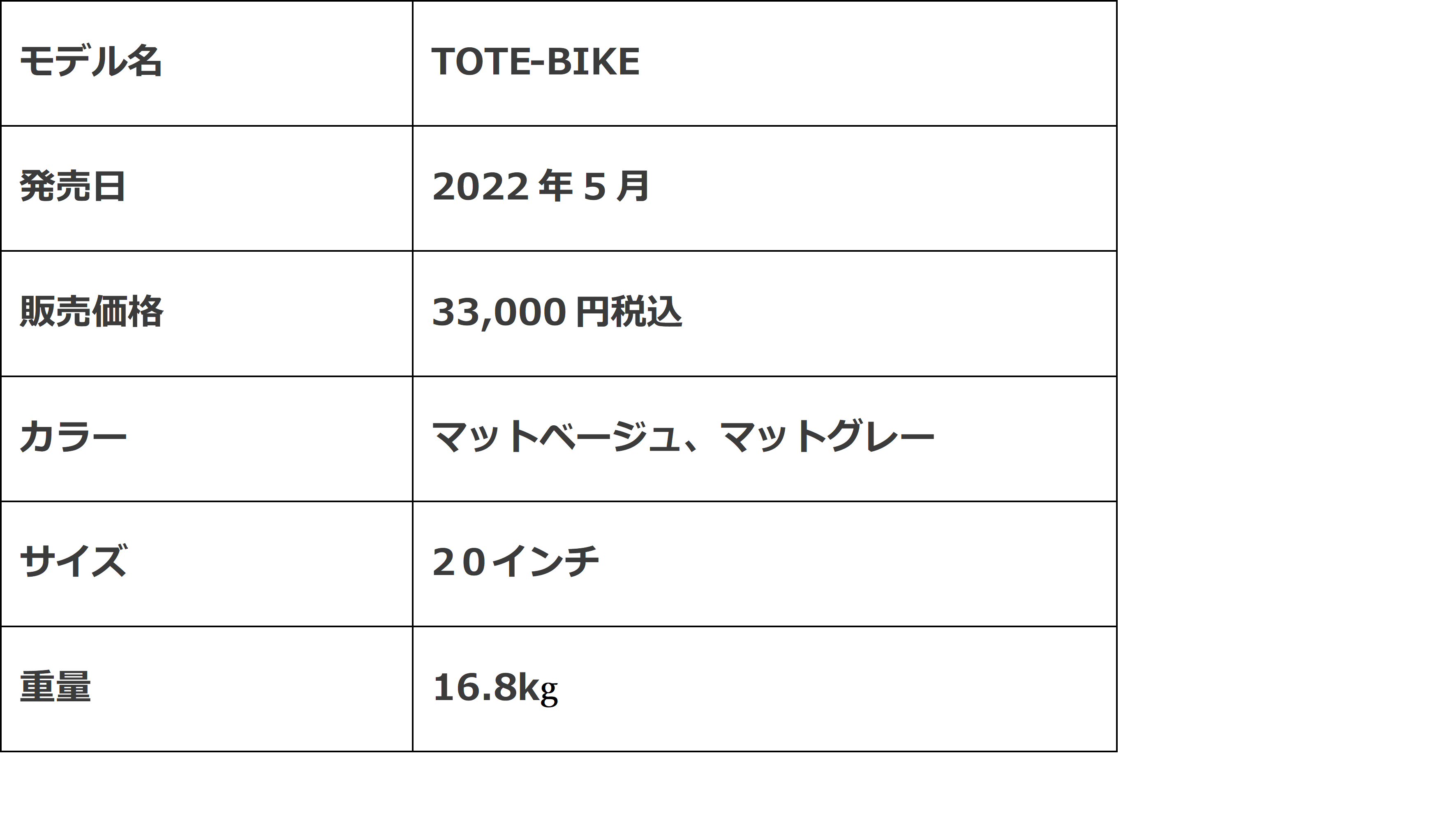 自転車の「新しいアタリマエ」を創る自転車専門店、DAIWA CYCLE株式会社(所在地:大阪府吹田市、代表取締役:涌本宜央)は、トートフレーム構造を採用し、新しい「運ぶ」を創る小径自転車 TOTE-BIKE(トートバイク)を全国のDAIWA CYCLEおよびオンラインストアで発売します。