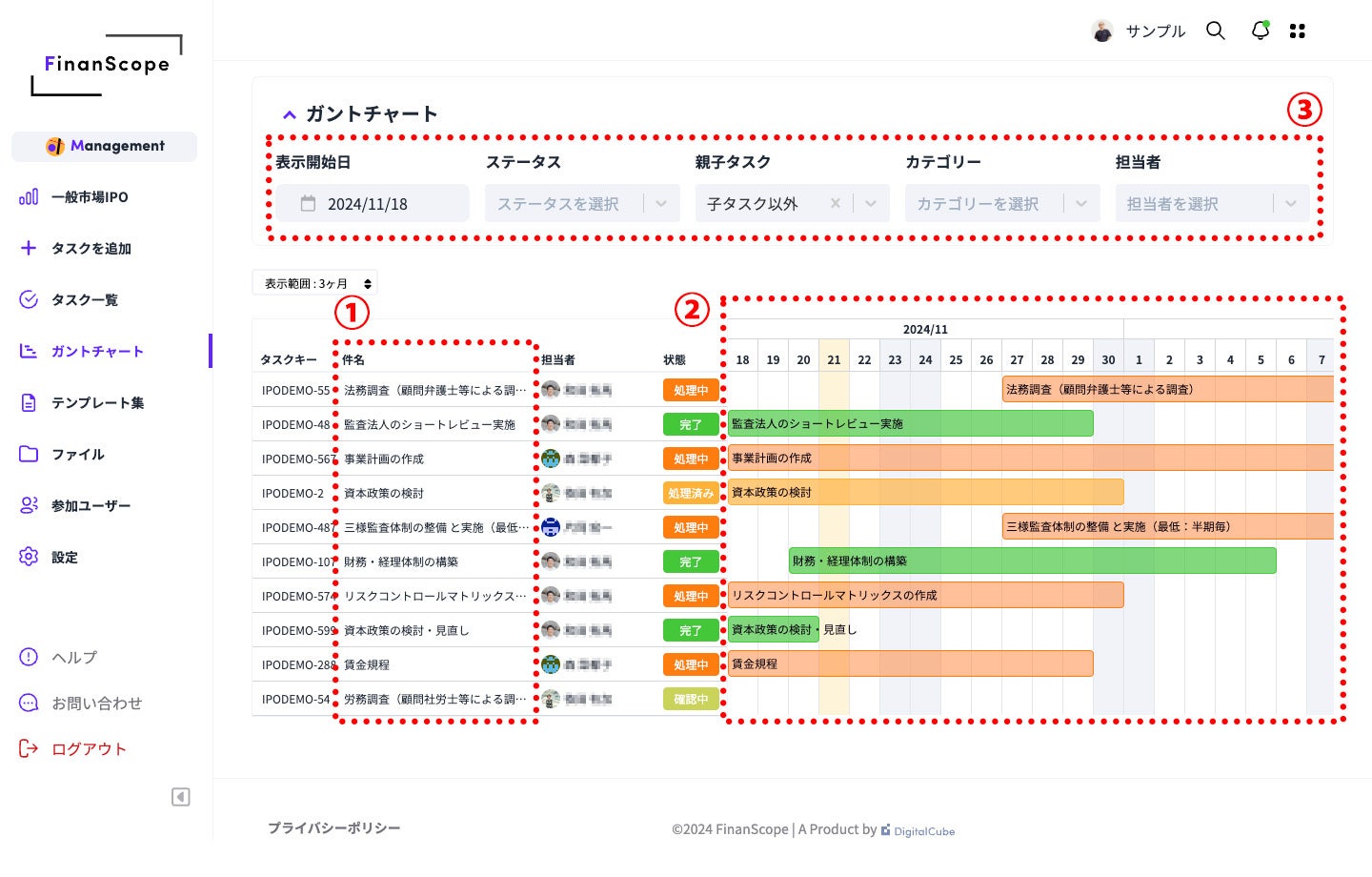 企業の事業成長を支援するクラウドサービス「FinanScope(ファイナンスコープ)」を提供する株式会社デジタルキューブ(TOKYO PRO Market・263A、本社:兵庫県神戸市、代表取締役社長:小賀浩通、以下「当社」)は、「FinanScope Management」にガントチャート機能を追加いたしました。この機能追加により、上場準備プロジェクトのタイムライン管理がより直感的かつ効率的になります。